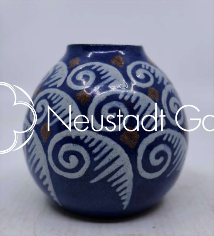 « Vase boule à décor de zigzag et fleurs » circa 1920 - 1934 - Hauteur : 17cm et diamètre : 17cm | Consulter ›› |