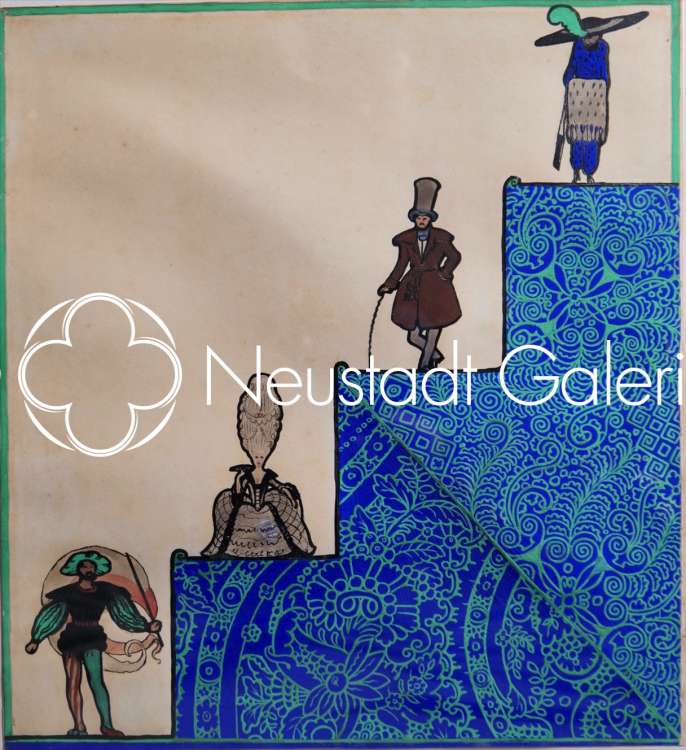 « Künstler Maskenfest - Modenarrheiten aus allen Zeiten (Folies dans la mode de tous les temps) » 1912 - 44x40cm (à vue)
