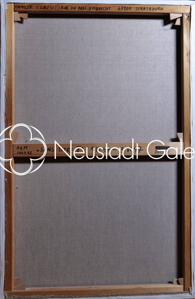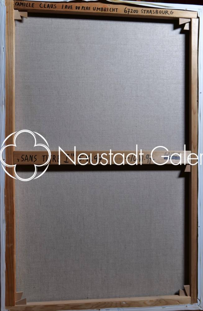 Ce diptyque monumental (sans titre), réalisé en 1997 par Camille Claus, se compose de deux huiles sur toile de 100 × 65 cm chacune. L’ensemble présente, dans une frontalité silencieuse, une figure féminine à gauche et une figure masculine à droite, traitées non comme des portraits individualisés mais comme des présences archétypales, presque immatérielles.