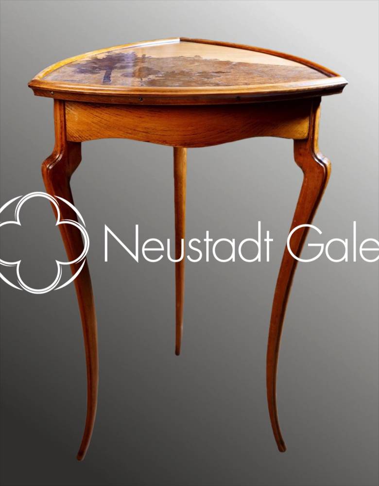 Ce délicat guéridon de Charles Spindler, réalisé vers 1910, constitue un remarquable témoignage du renouveau des arts décoratifs alsaciens au tournant du XXᵉ siècle. Estampillé C. Spindler sur la marqueterie, il s’inscrit pleinement dans la production de la Maison d’Art Alsacienne, où l’artiste sut conjuguer tradition régionale, virtuosité technique et sensibilité symboliste.