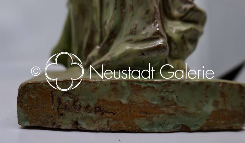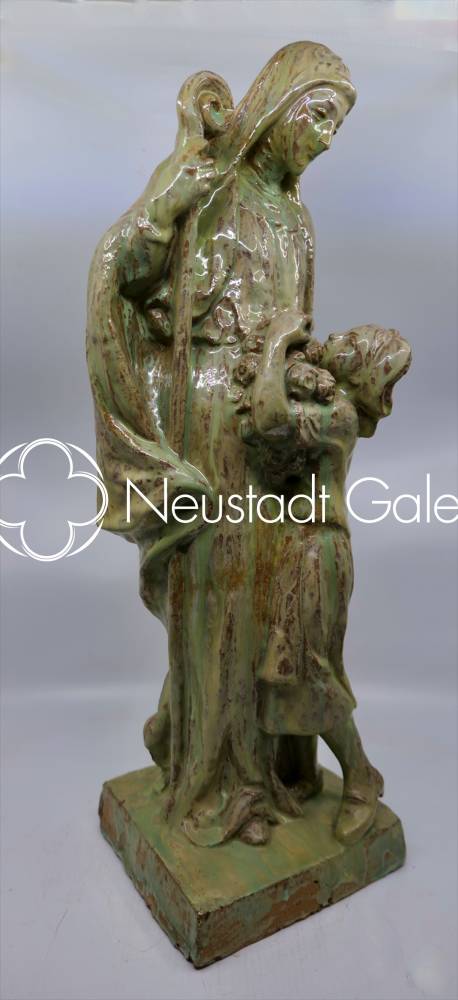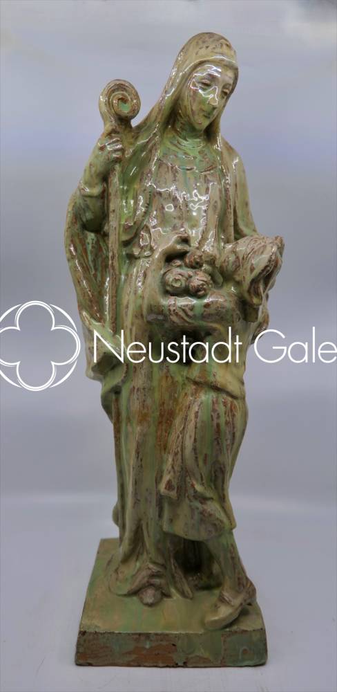 Sainte Odile et jeune alsacienne - céramique, hauteur 56cm - début XXe siècle (signature)