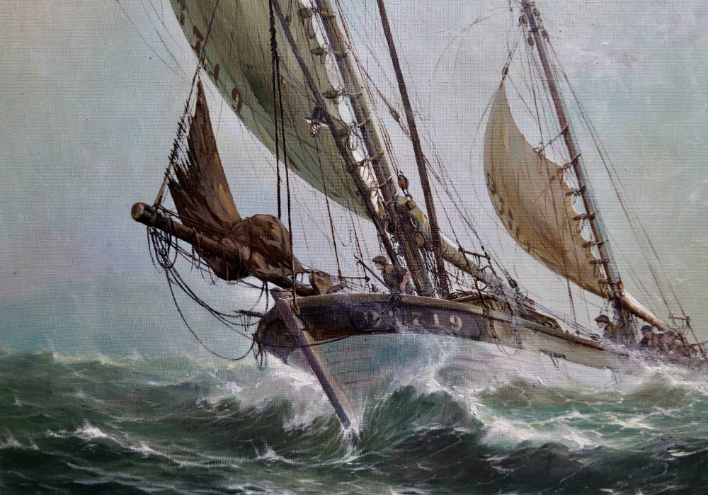 Léon ZEYTLINE "Le thonier en haute mer" huile sur toile, 61x50cm - 1957 (détail)