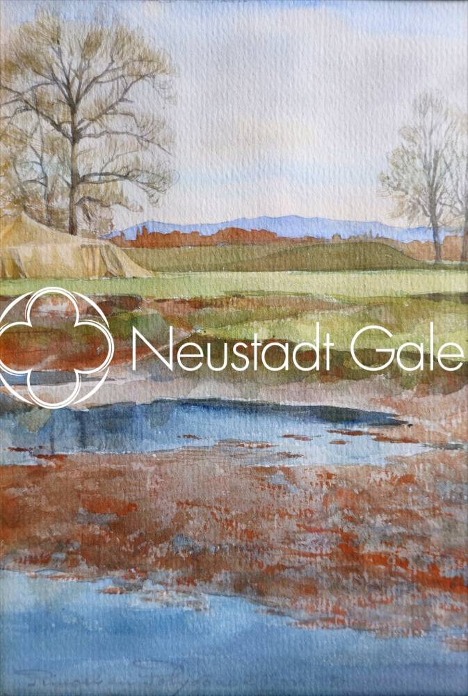 Par son format allongé, sa sobriété chromatique et la justesse de son atmosphère, cette aquarelle se présente comme une œuvre d’une grande finesse, où la simplicité du motif se transforme, par la sensibilité du peintre, en méditation silencieuse sur le paysage et le temps.