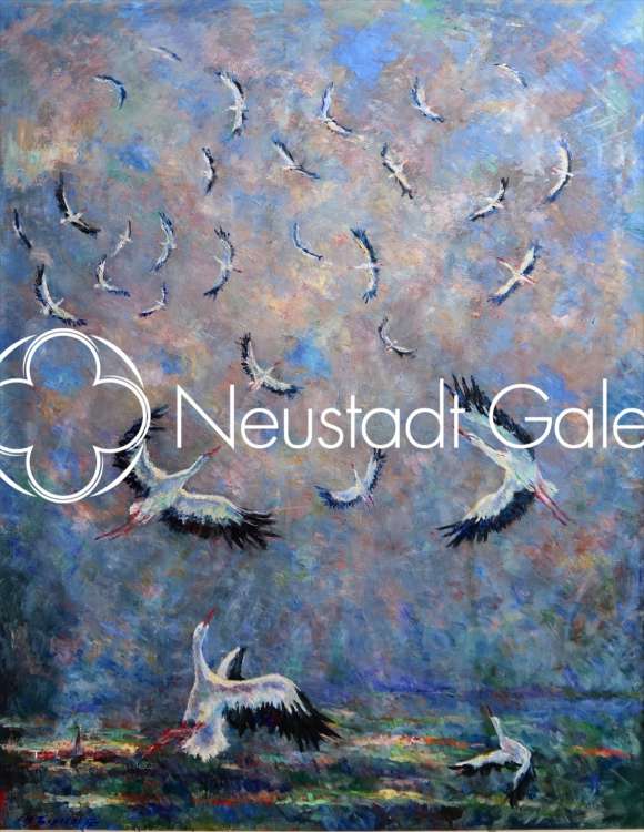 « Cigognes dans le ciel d'Alsace » 92x73cm