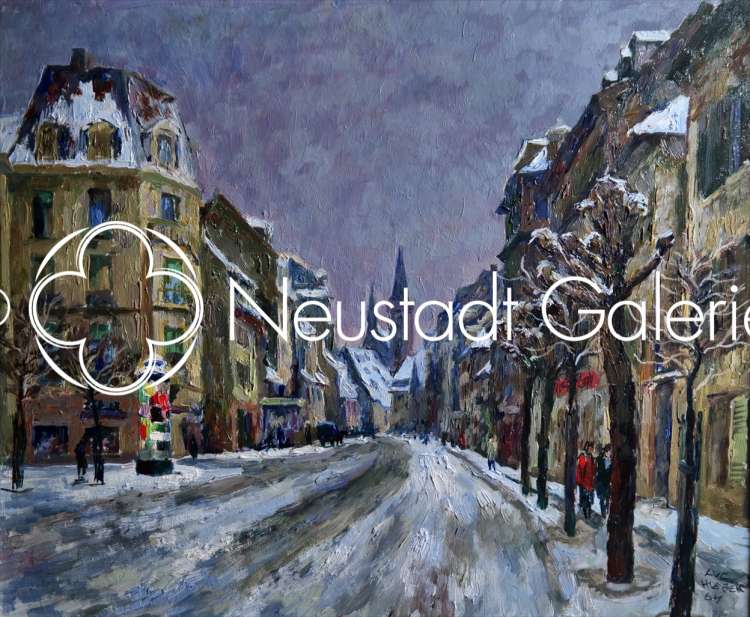 « Strasbourg, Saint Pierre-le-Vieux sous la neige depuis le Faubourg National » 1963 - 50x61cm