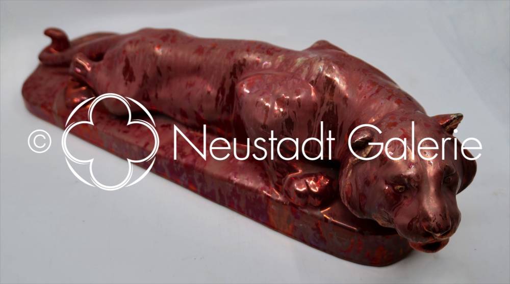 Alfred MarzolffStrasbourg, 1867 - 1936, Rountzenheim« Lionne à l'affût »céramique Animaux H : 15cm - l : 49cm et L : 15cm