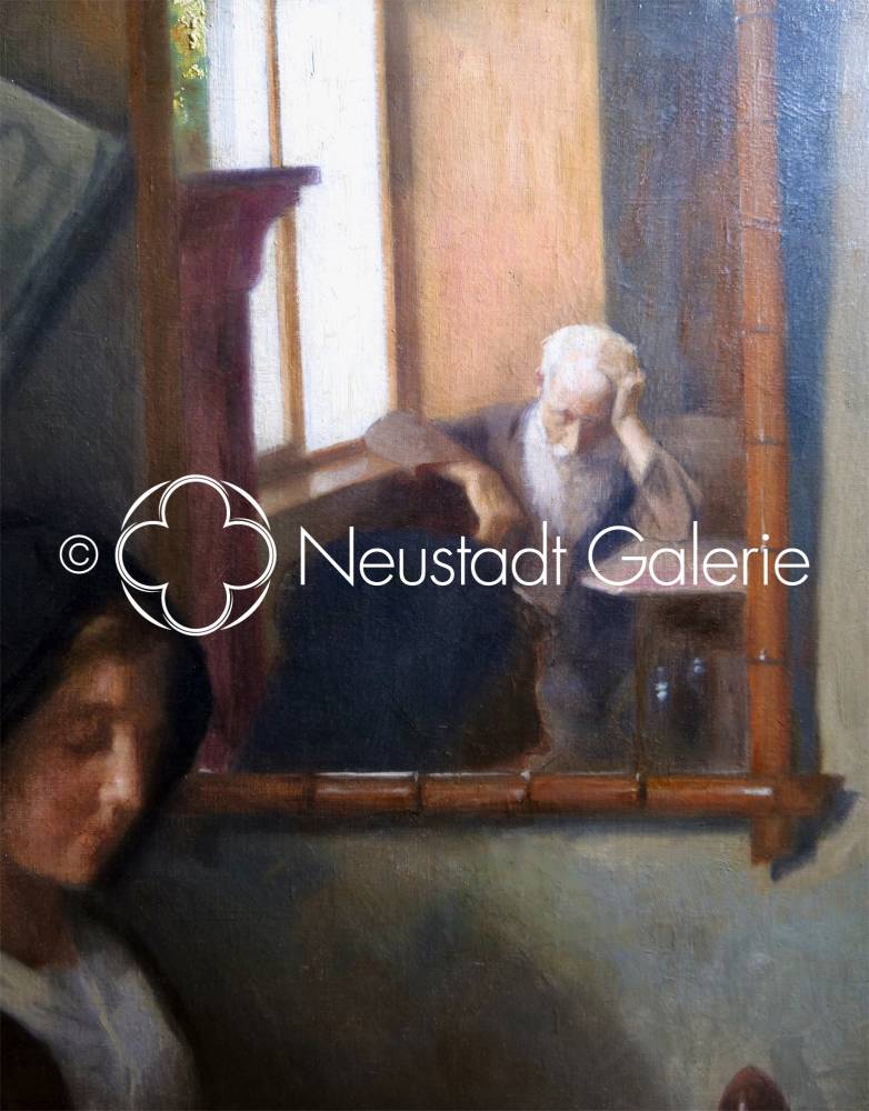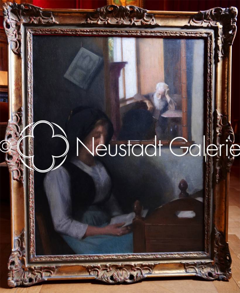 Par la noblesse du sujet, la maîtrise technique et la délicatesse psychologique, cette œuvre se situe parmi les compositions les plus abouties d’Auguste Zwiller, révélant son aptitude à saisir ces instants suspendus où la vie domestique devient le lieu d’une méditation silencieuse et profondément humaine.