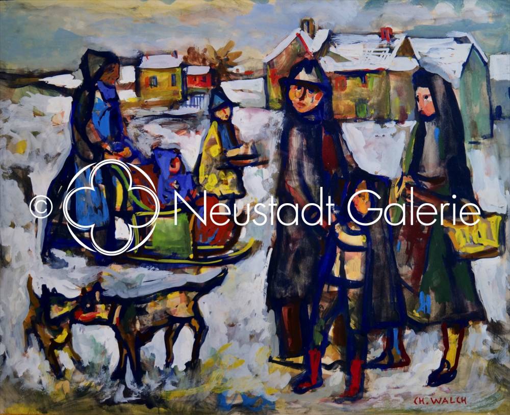 Charles WALCH "Neige en Alsace" gouache (détail)