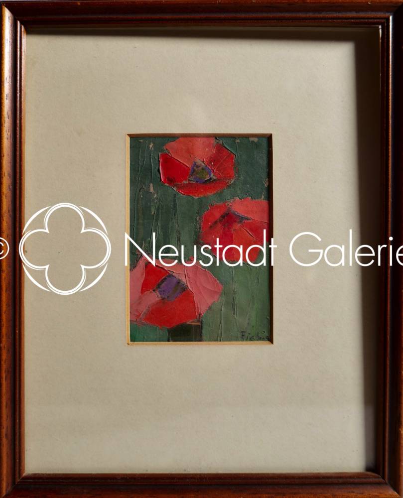 Frederic FiebigTalsen (Lettonie), 1885 - 1953, Sélestat« Les coquelicots »Huile sur carton Fleurs 11,5x8cm (à vue) Signature en bas à droite vers 1925