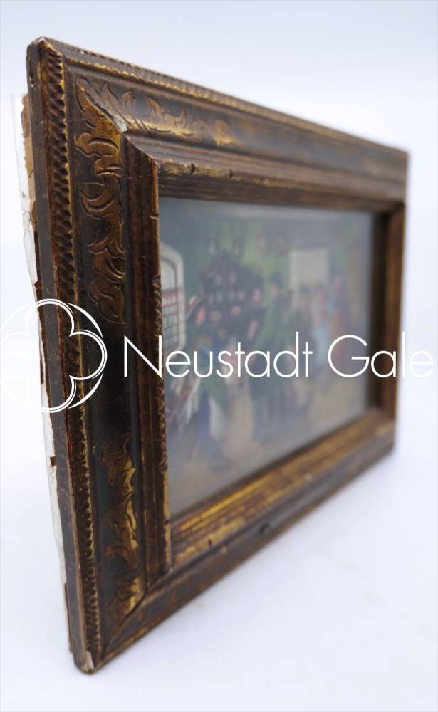 Joseph STEIB "Le retour de chasse" Huile sur panneau, 14x22cm. - 1934 - avec son cadre (verso)