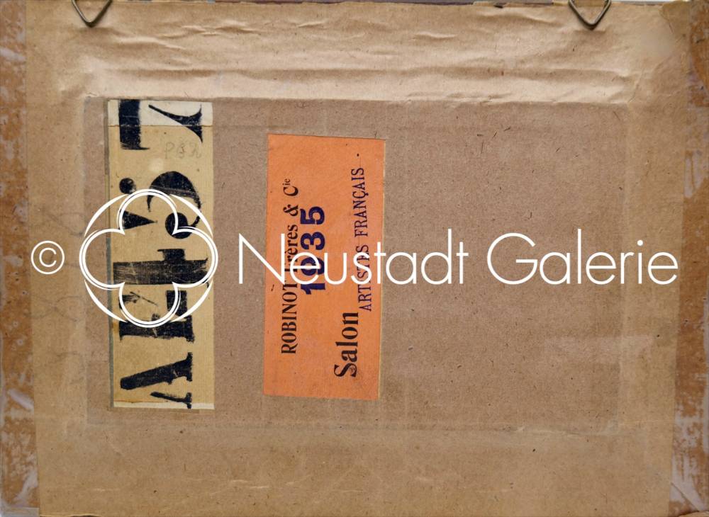 Information(s) supplémentaire(s) : Excellent état de conservation. Cadre d'origine. Format avec son cadre : 22x31cm. Porte une étiquette au dos "AE457" et "Robinot Frères & Cie 1935, Salon Artistes français".