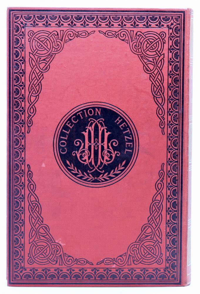 Tirage de 1883, Grand in-8 cartonnage éditeur pleine percaline rouge aux deux éléphants, titre dans le cartouche, toutes tranches dorées, cartonnage signé A. Lenègre mention Hetzel sous le cartouche, médaillon circulaire à motifs noirs au plat inférieur, Bibliothèque d'Education et de Récréation catalogue BR. Toutes tranches dorées. Sa couverture est parfaite, les coins sont parfaits, les coiffes sont frottées mais sans excès et restent d’excellente tenue. Le dos est légèrement décoloré. Quelques marges brunies à l’intérieur de cet ouvrage et diverses tâches dans les pages. Il est de bonne condition avec ses pages en bon état physique. Une excellente tenue de leur brochage, sans cahier déboîté ni page volante, leurs tranches étant parfaitement lisses.