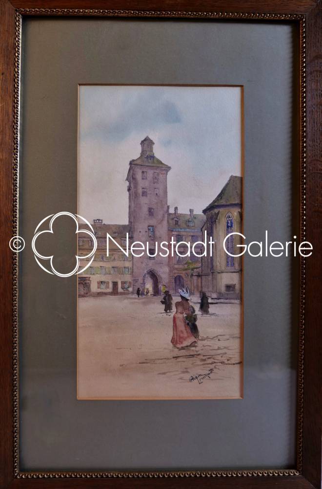LAISE (Adam-Leonhard) "Porte de l'Hôpital à Strasbourg " aquarelle, 35,5x19cm (détail))