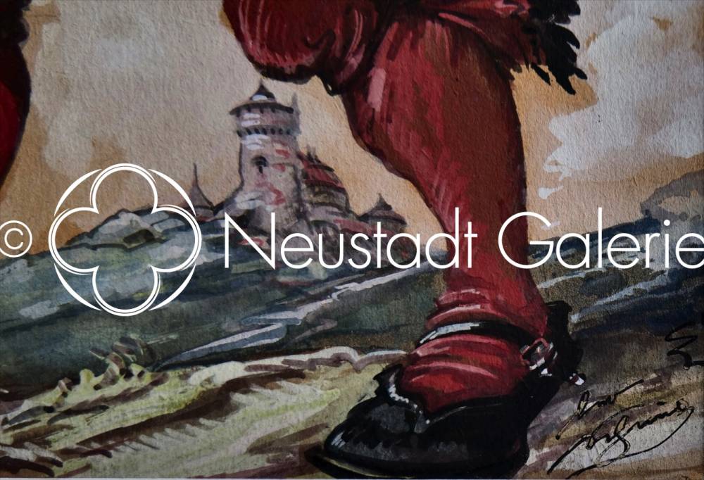 Léo SCHNUG "Hallebardier dans un paysage" aquarelle, 37,5x25,5cm (détail)