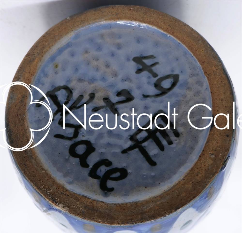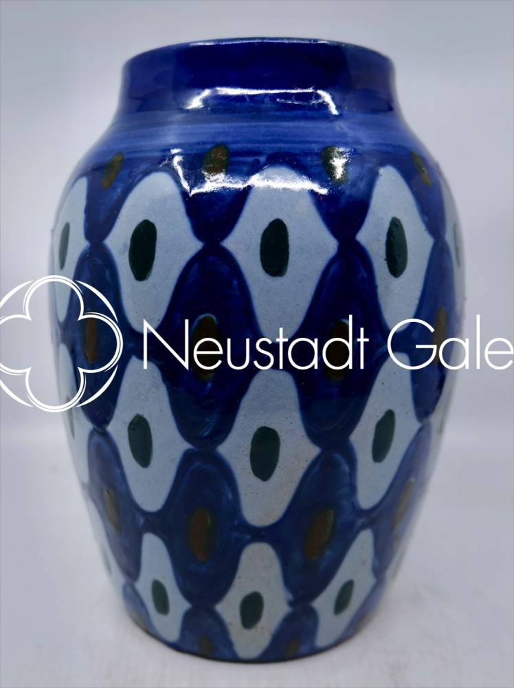 Léon ELCHINGER "Vase à décor géométrique bleu et points rouges " céramique hauteur : 25cm - vers 1920 et 1934