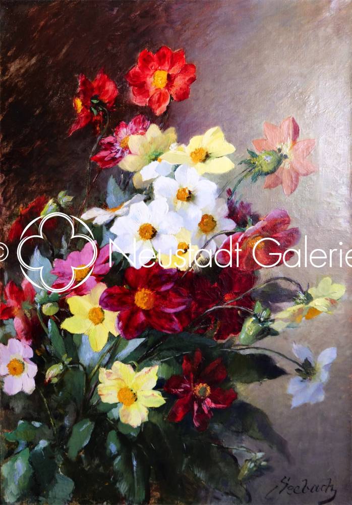 Lothar von SeebachFessenbach, 1853 - 1930, Strasbourg« Bouquet de dahlias et anémones »Huile sur toile Bouquet de fleurs 66,5x46,5cm Signature en bas à droite vers 1890 / 1900