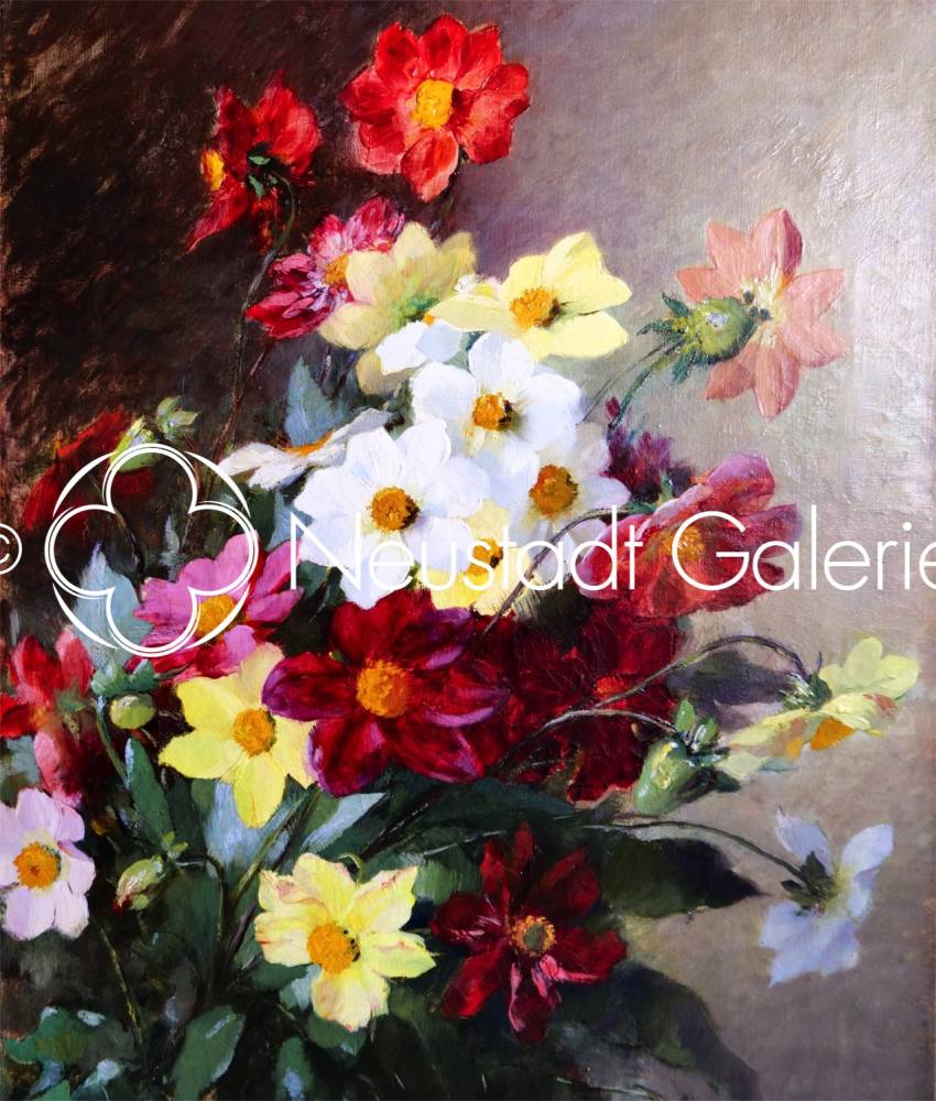 Lothar von SEEBACH "Bouquet de dahlias et anémones" huile sur toile, 66,5x46,5cm - vers 1890 / 1900 (détail)