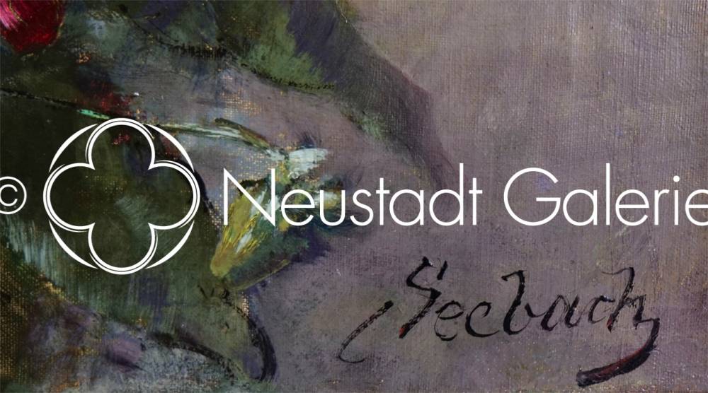 Lothar von SEEBACH "Bouquet de dahlias et anémones" huile sur toile, 66,5x46,5cm - vers 1890 / 1900 (détail signature)