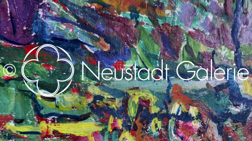 La palette, riche et audacieuse, témoigne de l’assimilation par Binaepfel des leçons du post-impressionnisme et, plus largement, de la modernité picturale du tournant du XXᵉ siècle. Les bleus profonds du ciel et des ombres structurent l’espace, dialoguant avec les verts vibrants de la prairie et les jaunes chauds du feuillage. Les touches épaisses, visibles, parfois presque heurtées, refusent toute illusion naturaliste stricte au profit d’une vision subjective et expressive du paysage. La couleur devient ainsi le principal vecteur de l’émotion, traduisant la chaleur de la journée et la quiétude de l’instant.