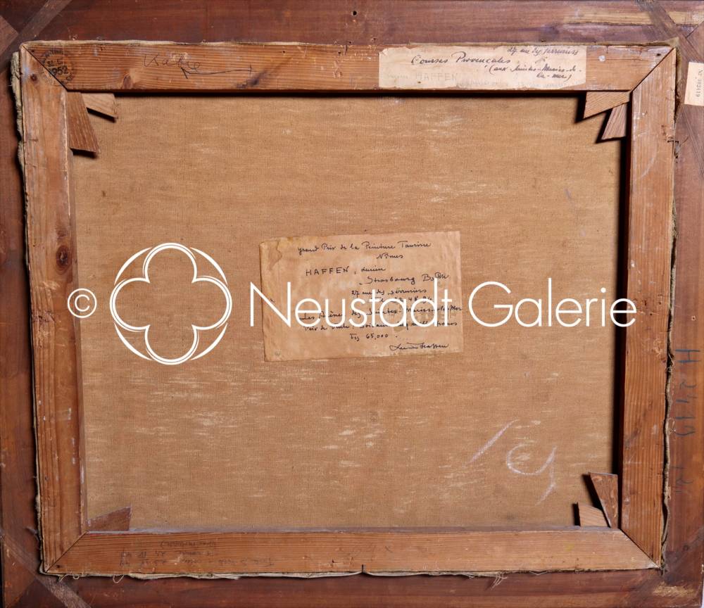 Information(s) supplémentaire(s) : Excellent état. Cadre d'origine. Etiquettes et tampon au dos sur la toile et le châssis. Cadre d'origine. Format avec son cadre : 68x77cm.