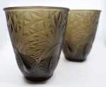 Paire de vases en verre moulé fumé de Pierre d'Avesn (1901 - 1990) représentant des oiseaux stylisés dans la végétation. Signé "P. D'AVESN FRANCE" en dessous. Hauteur : 20,5cm et diamètre : 19cm Bon état de conservation. Vendu par paire. (ne comprend pas le tabouret de Chapo qui se trouve sur une des photographie)