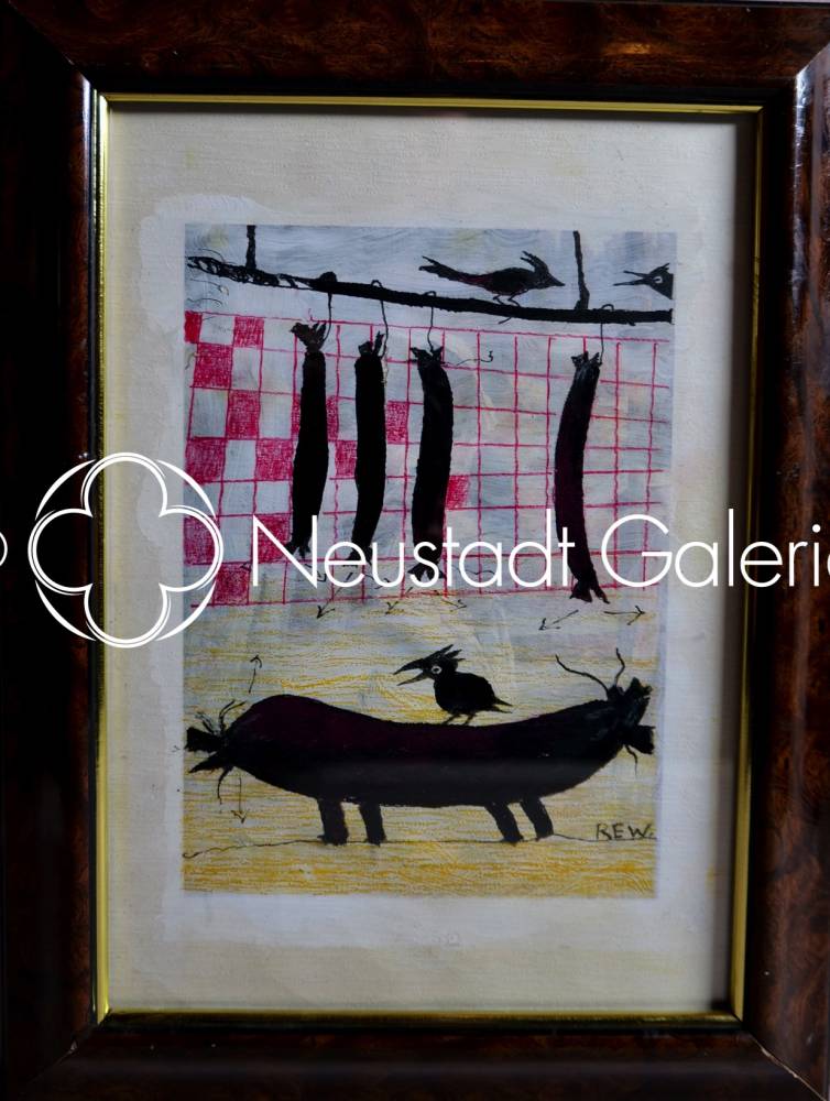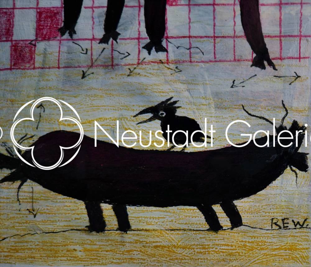 Par la combinaison du dessin, de l’écriture et du symbole, Raymond-Émile Waydelich construit ici une œuvre où l’humour apparent dissimule une véritable profondeur de regard. Cette Schmierwurscht, motif trivial élevé au rang d’icône personnelle, incarne parfaitement la capacité de l’artiste à transformer le réel en une poésie visuelle singulière, où le familier devient étrange et où le dérisoire accède à une forme de permanence.