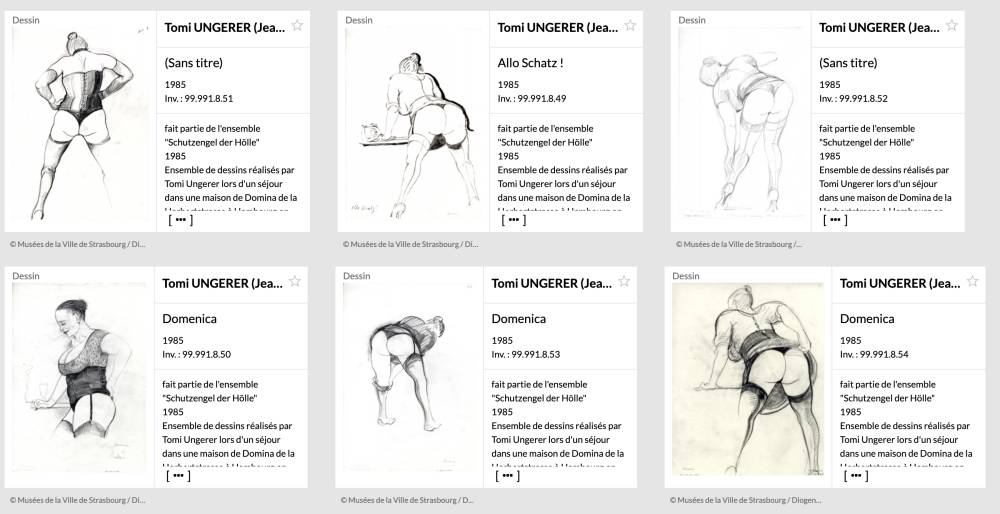 Fait partie d'un rare ensemble de dessins dont une partie est conservée au Musée Tomi UNGERER, que l'artiste à réalisé lors d'un séjour dans une maison de Domina de la Herbertstrasse à Hambourg en 1985.